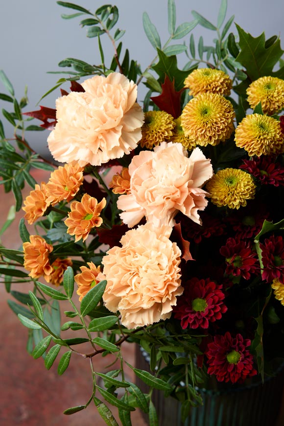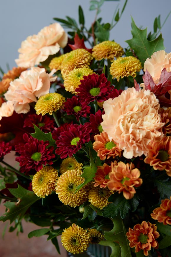 We enjoy using seasonal materials to introduce you to intriguing, fragrant products that enhance our bouquets and compositions with maximum effect. All our bouquets and sponge-based compositions make use of an assortment carefully chosen greenery to heighten the seasonality and colours of our products.