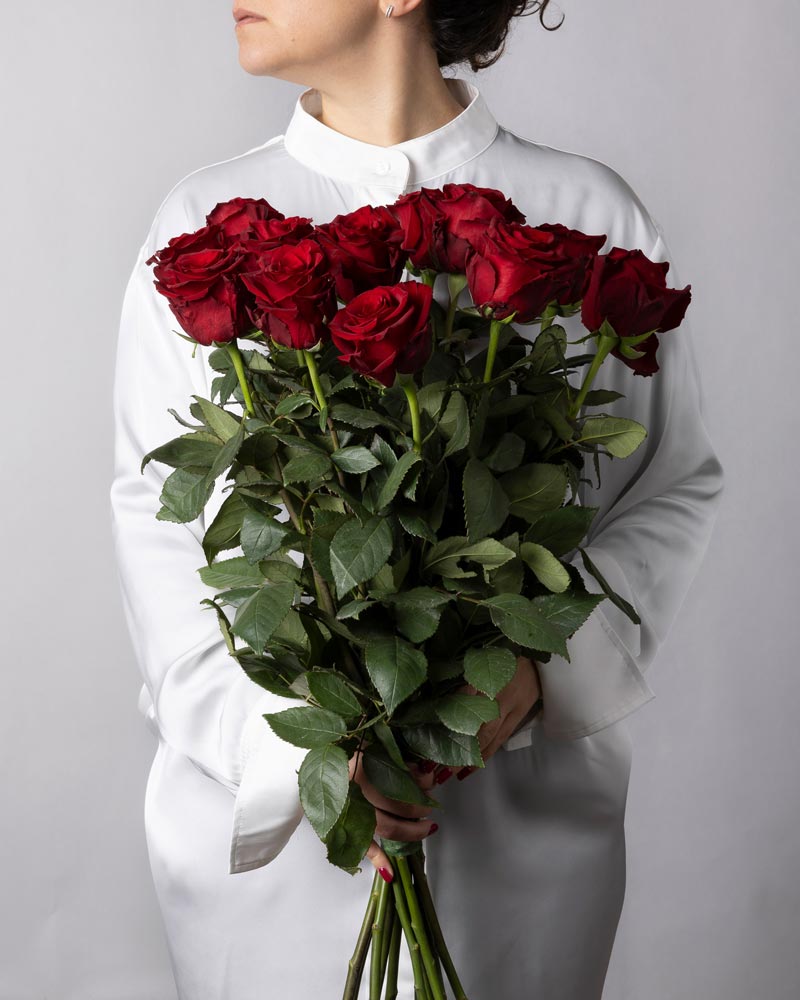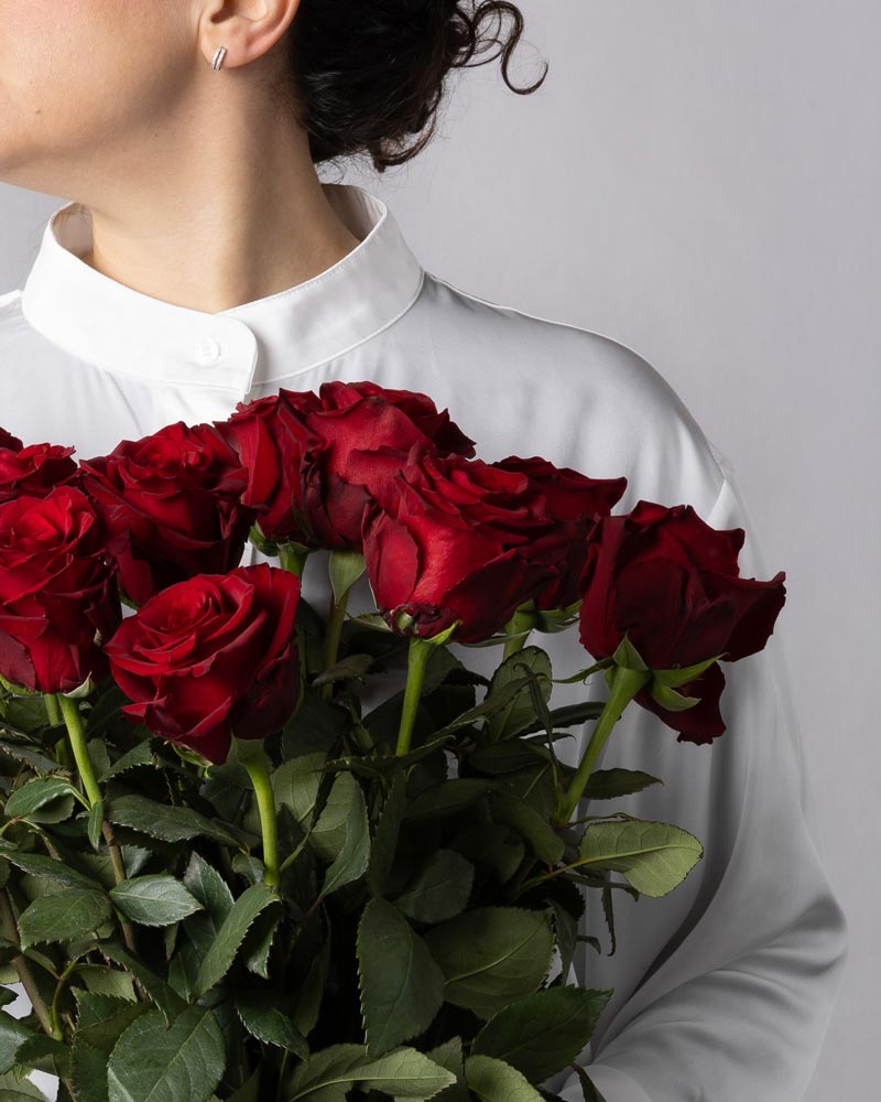 Rose rosse di alta qualità, un bellissimo bouquet perfetto per occasioni speciali, anniversari di matrimonio e di fidanzamento, San Valentino e per ogni volta in cui vuoi dire “Ti amo”.